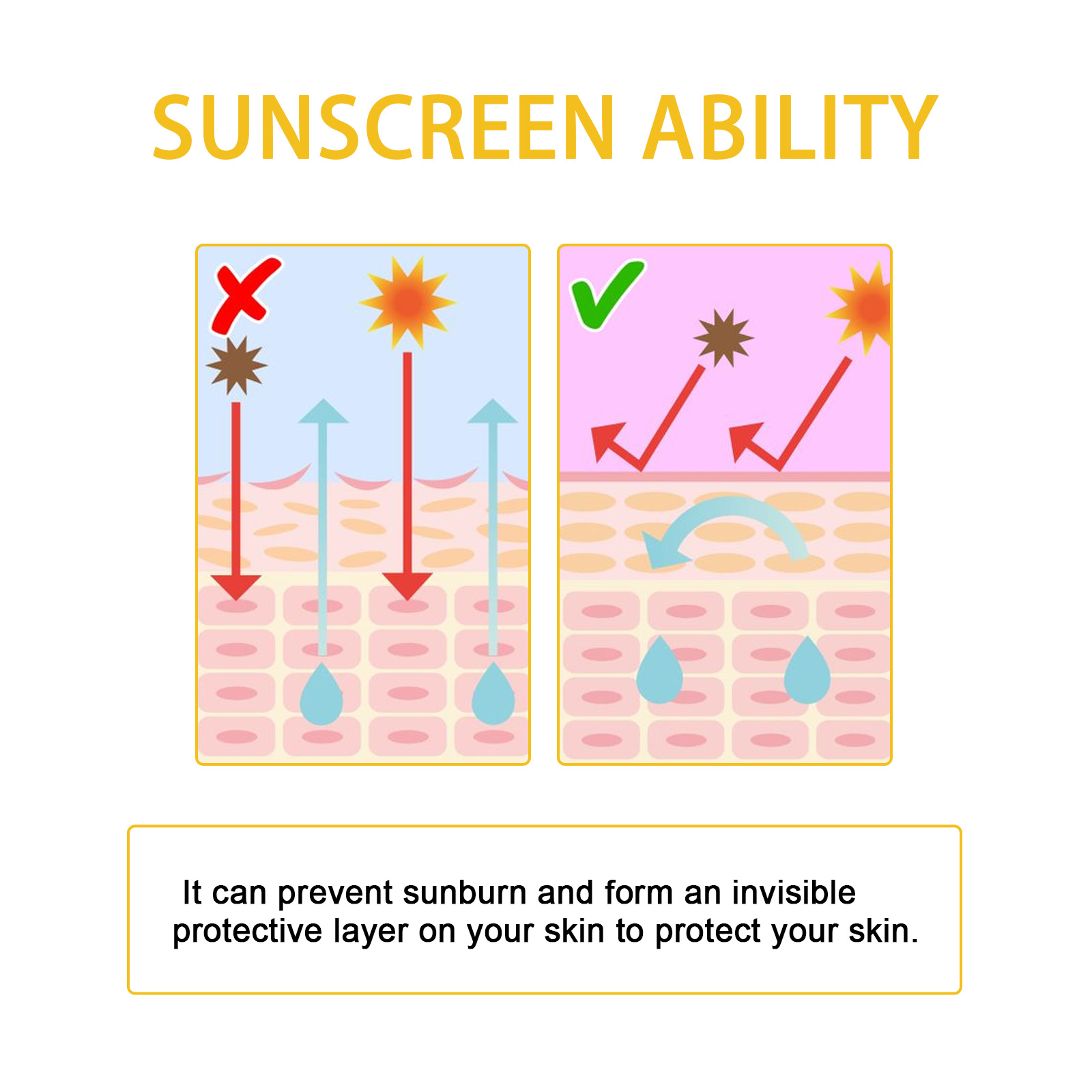 Our beauty moisturizing and protective cream contains zinc oxide, titanium dioxide and glycerin. It forms an invisible protective layer, provides moisturizing effect, and even skin tone is fresh and non-greasy. Its application method is very simple: clean the skin and keep dry, take appropriate amount of this product evenly applied to the skin. And it protects against UV rays.